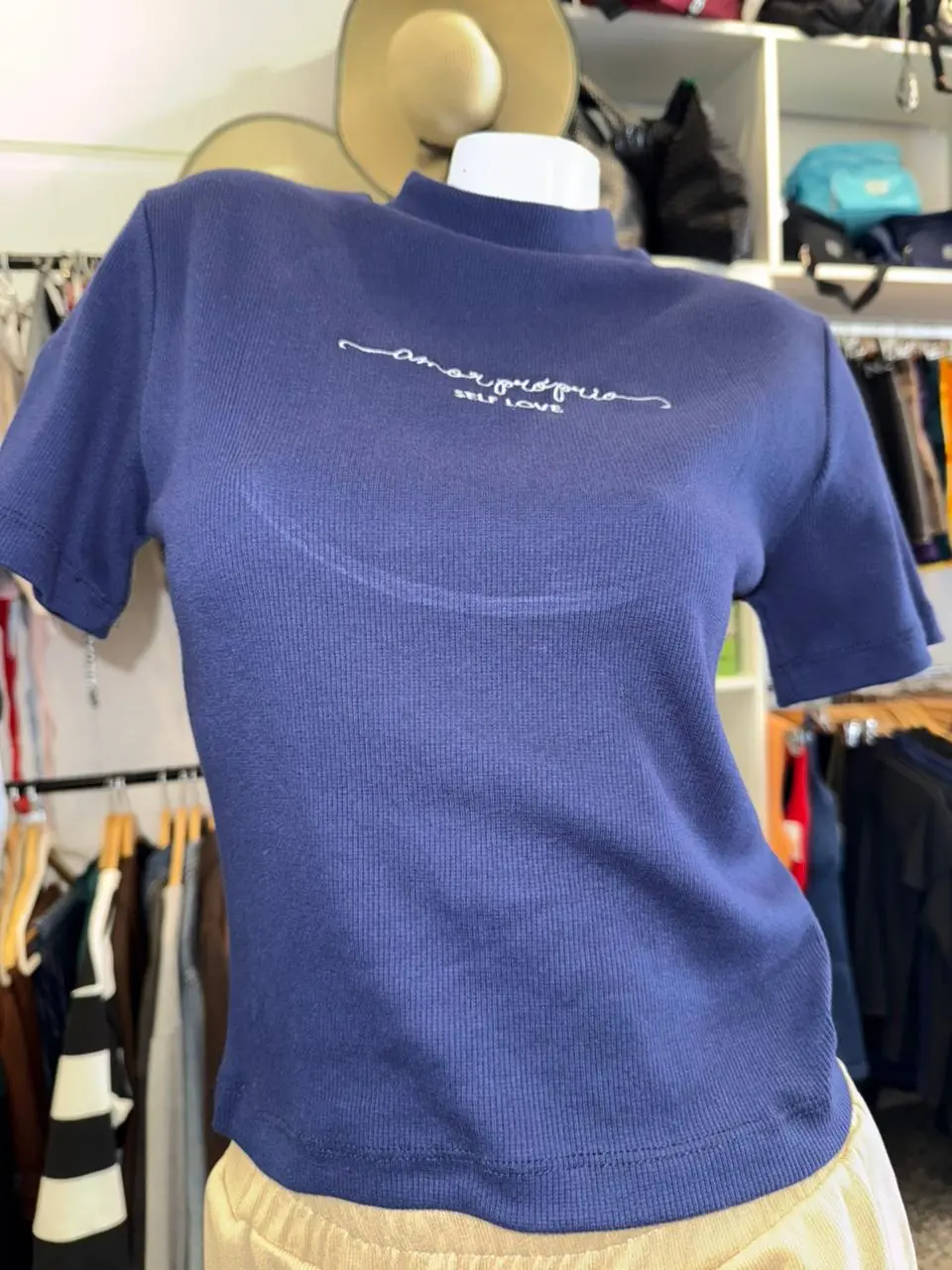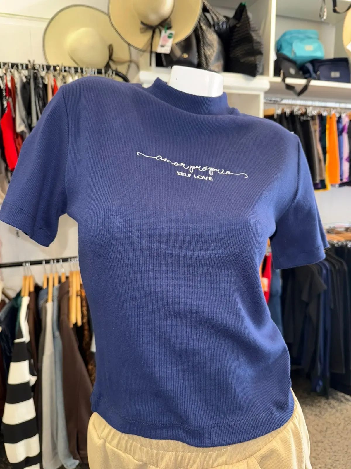 Remera Amor Propio 💕 porque estar a la moda también es quererse. Tela súper cómoda, color azul hermoso y corte clásico que se adapta a todos los looks. Ideal para usar con tus jeans favoritos o debajo de un buzo abierto. ¡Simple, linda y con mensaje positivo!